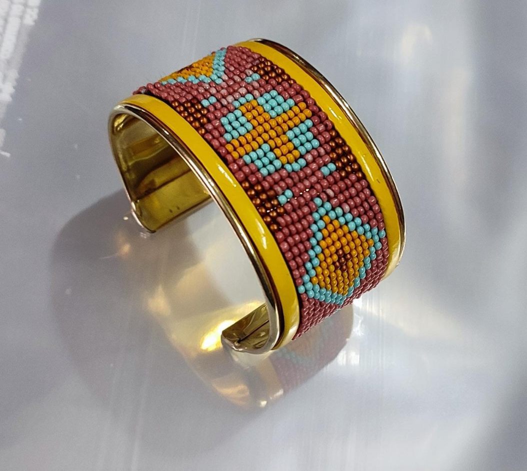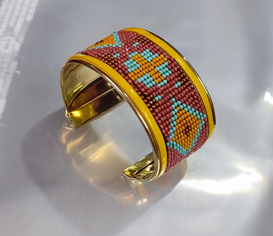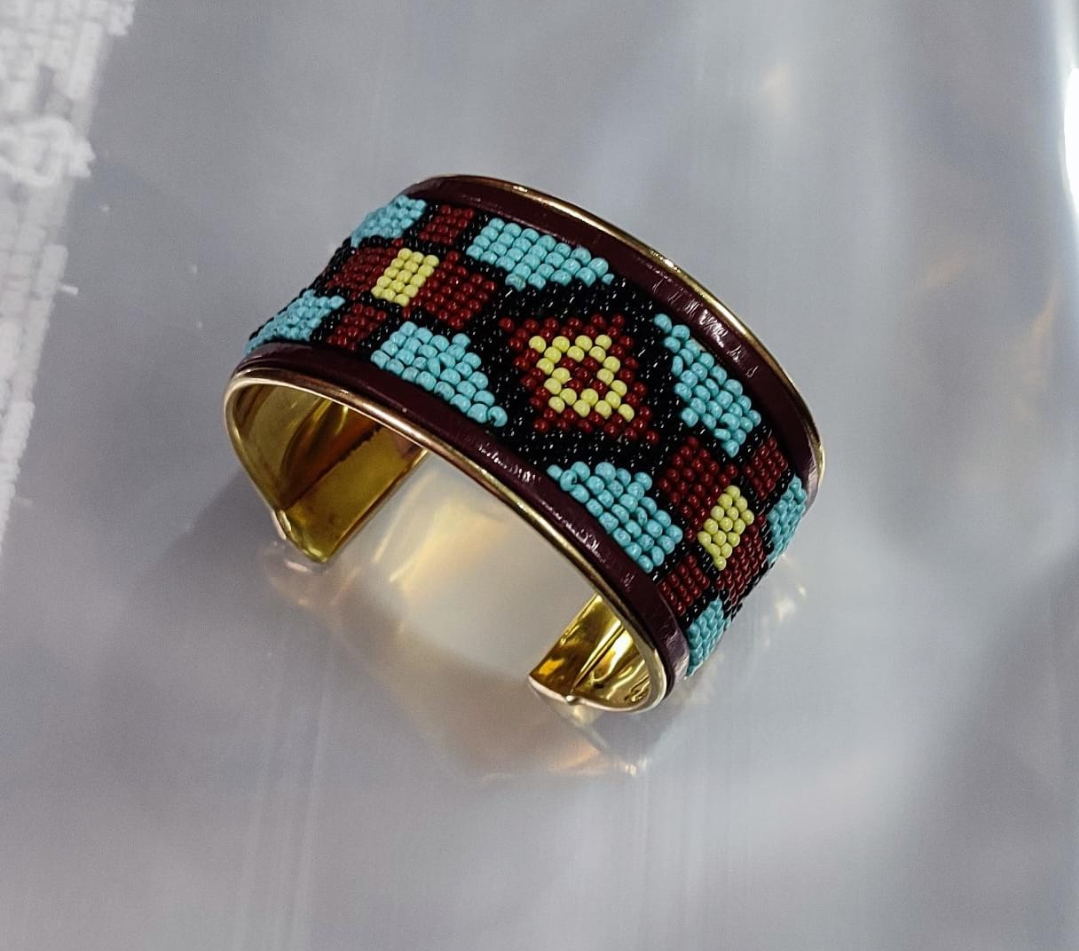 Expertly handwoven by skilled artisans, this cuff features a **durable base**, ensuring comfort and long-lasting wear. The geometric beadwork showcases precision, patience, and tradition — reflecting the spirit of Native-inspired artistry.