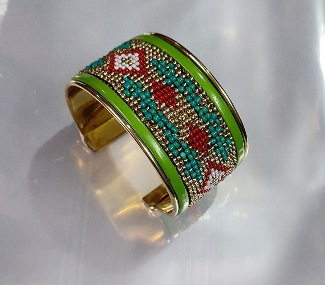 Embrace timeless artistry with this **Native American–style Beaded Cuff Bracelet**, meticulously handcrafted with vibrant glass beads arranged in a striking **geometric pattern**. Each bracelet is a symbol of heritage craftsmanship and contemporary fashion, making it the perfect statement accessory for both casual and elegant looks.